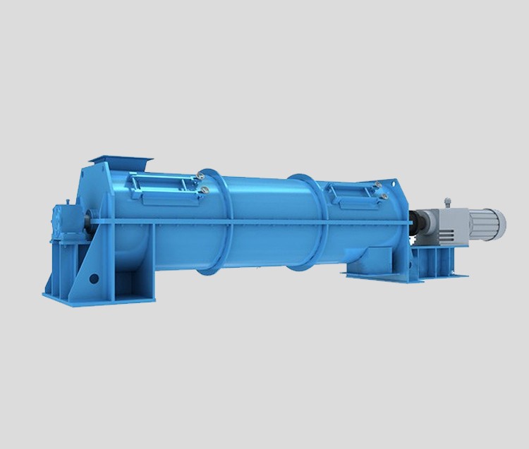 本系列通用產(chǎn)品由電機通過硬齒面減速器,再通過齒輪聯(lián)軸器(或液力耦合器)帶動混合轉(zhuǎn)子以一定速度轉(zhuǎn)動,混合轉(zhuǎn)子上固定有特殊幾何形狀高耐磨混合工具,當混合工具轉(zhuǎn)動時,使物料在筒體內(nèi)進行混合并可連續(xù)出料,物料在容器內(nèi)進退混合,達到混合目的。
